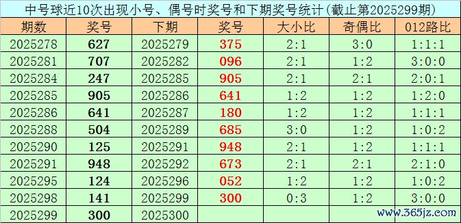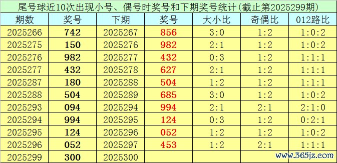 开奖回顾:体彩胪列三第2025299期开出奖号300,奖号大小比开出0:3,奇偶比开出1:2,012路比开出3:0:0。